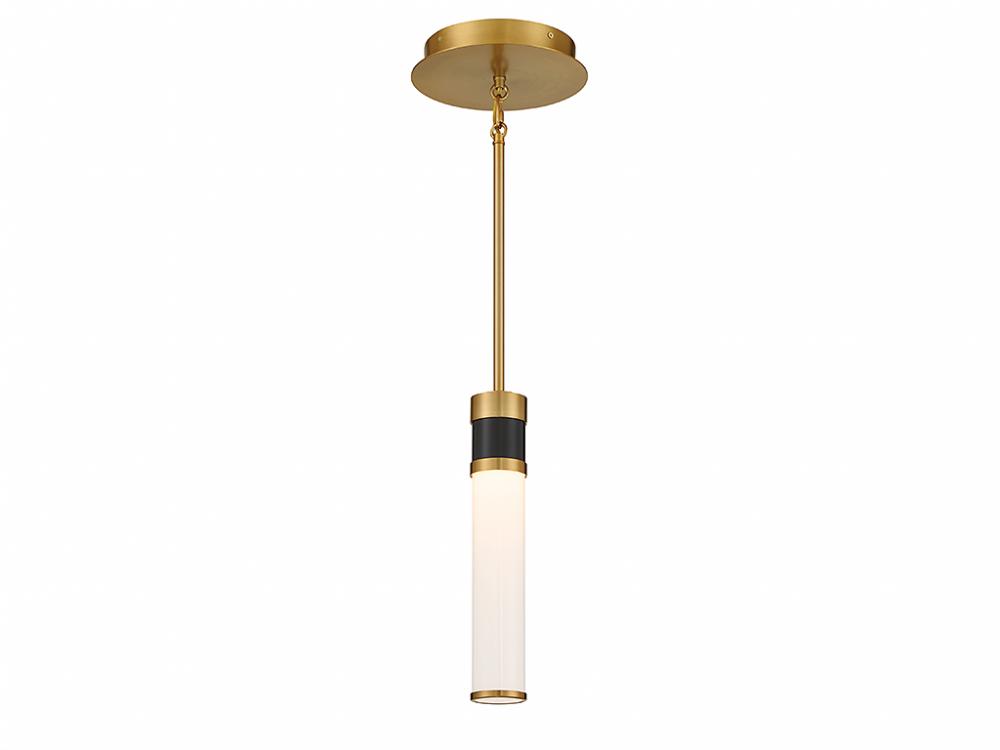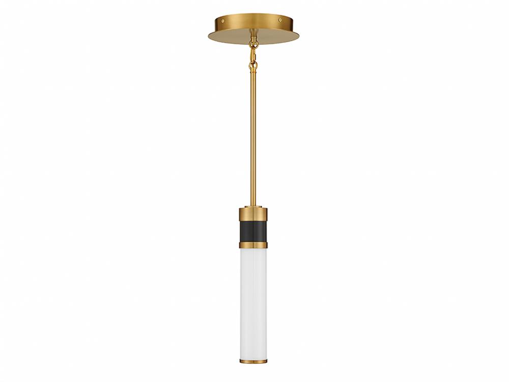 The Savoy House Abel 1-light pendant flaunts a sleek and airy look that creates a robust presence in any space. A glass shade is paired with fashionable ring accents in matte black with warm brass. An integrated LED light contributes to the sleekness. Abel is 2.68" in width and has an adjustable height that ranges from 14.25" to 67.75". Comes with four 12" downrods and one 6" downrod.
