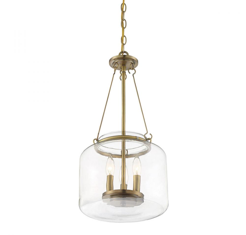 The Akron 3-light pendant from Savoy House proves that a simple style can be stunning! Its square clear glass shade protects the light sources within and is accentuated by thoughtfully-detailed hardware. Finished in rich warm brass. Pendants are very versatile and can be used in many different indoor spaces, including kitchens, foyers, offices, great rooms, bedrooms and even bathrooms. Bulbs not included. Try using stylized bulbs like Edison or tubular bulbs for a different look! The warm brass finish can be matched with brass hardware or mixed with hardware in other finishes. Akron brings a touch of vintage inspiration to any style of room, especially classic, traditional and transitional. When you choose a Savoy House lighting fixture, you can be certain you've selected a piece that will withstand the test of time.