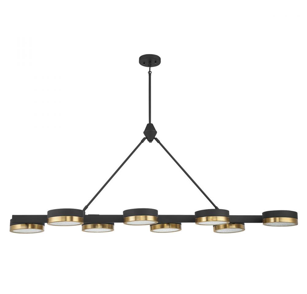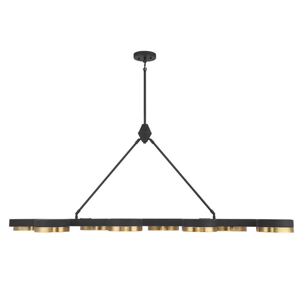 Ashor 8-Light LED Linear Chandelier in Matte Black with Warm Brass Accents