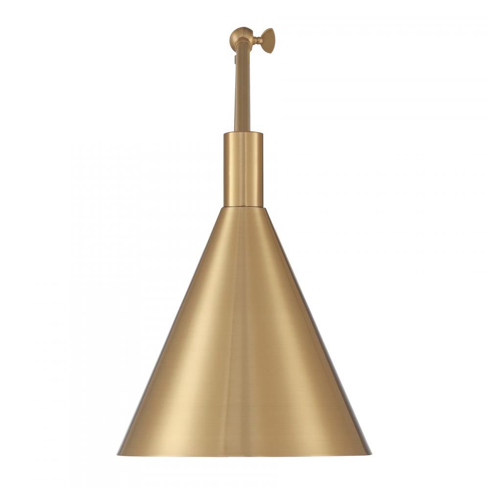 The Savoy House Pharos 1-light sconce is part of Moderne by Breegan Jane, bringing her signature approachable modern luxury style to your home. Breegan loves how metallics elevate a design, as exemplified by this opaque metal shade finished entirely in champagne-toned Noble Brass. The shade can be adjusted, providing different angles of light to meet your needs, and the arm is adjustable as well. This sconce also features a convenient on-off switch and can be plugged in or hardwired. Pharos is 18.5" in height and 8" in width. Its adjustable arm can extend from 10" to 32". Uses one candelabra size bulb of up to 60 watts. The bulb is not included. This sconce is damp area rated.