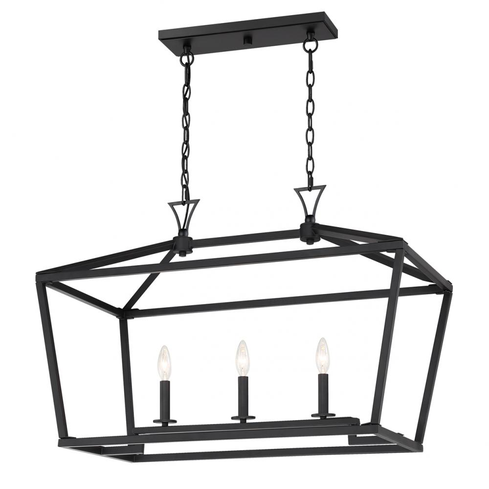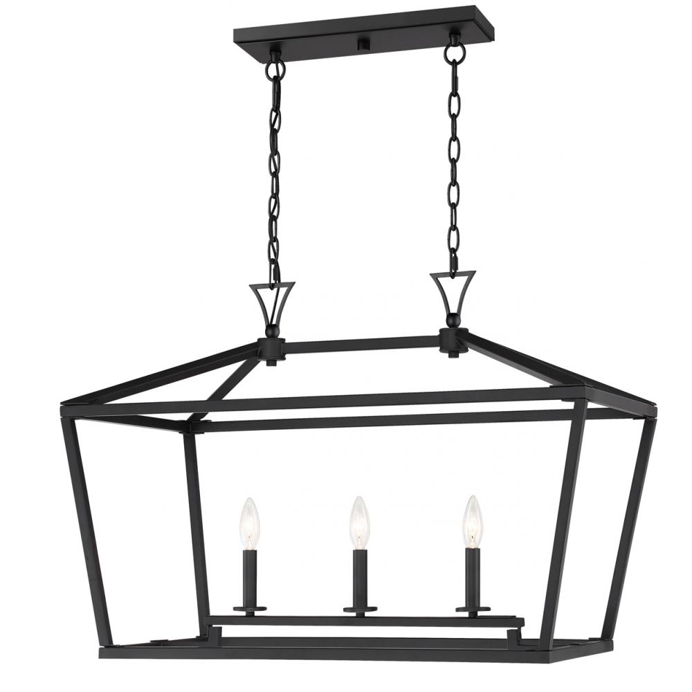 The Savoy House Townsend 3-light trestle offers up a casual open lantern look that is the perfect addition for any space inside the home. matte black finish. Trestle lights are ideal for use over rectangular dining room tables or kitchen islands, but you can also use them in living rooms, great rooms, over pool tables and in media rooms, too. Bulbs not included. Try using stylized bulbs like Edison or tubular bulbs for a different look! The matte black finish can be matched with black hardware or mixed with hardware in other finishes. Townsend is a great option for adding a bold touch to rooms in transitional, farmhouse or classic style. When you choose a Savoy House lighting fixture, you can be certain you've selected a piece that will withstand the test of time.