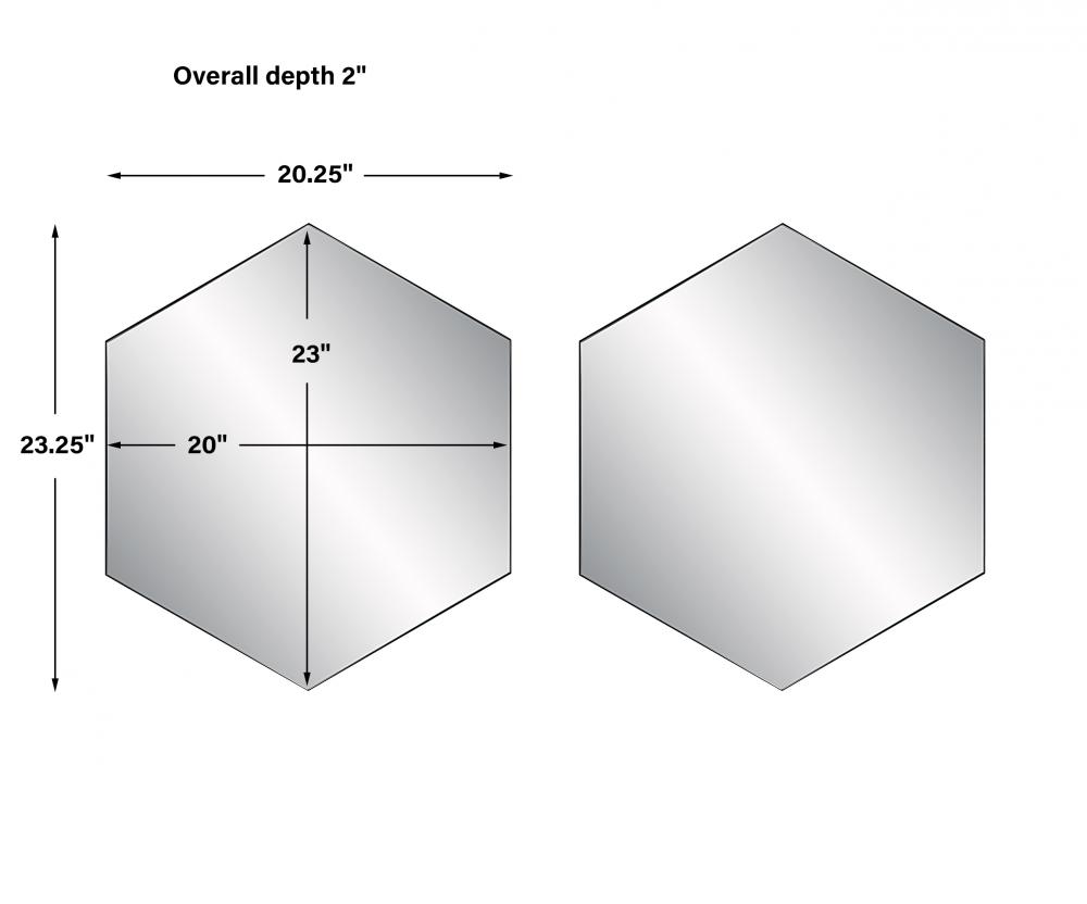 This set of two hexagon mirrors are encased in thick iron bands finished in a soft matte black. Each mirror has a 1" bevel and may be hung horizontal or vertical.