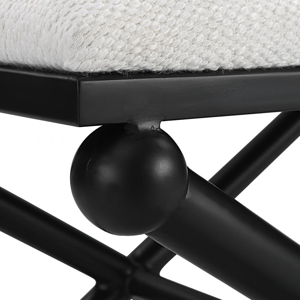 With Classic Simplicity, This Small Bench Features A Smooth Iron Base Finished in Satin Black, Upholstered in A Crisp Textured White Polyester.
