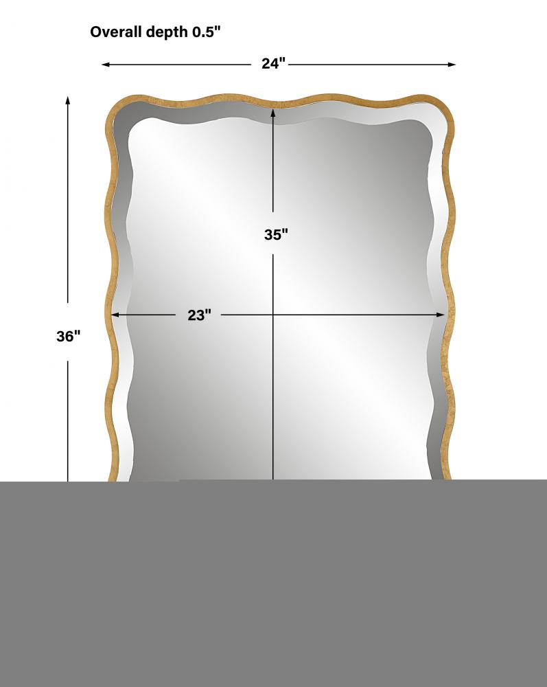 Showcasing A Feminine Scalloped Edge, This Shaped Wood Mirror Adds Whimsical Flair to Any Design. The Mirror is Finished in Aged Gold and Has A 1" Bevel.