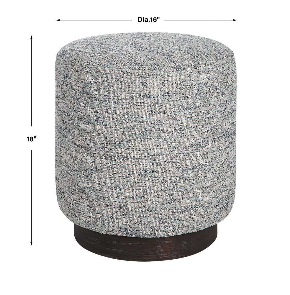 This Plush Ottoman is Covered in A Casual Blue and White Tweed Fabric with A Dark Walnut Stained Oak Base. Versatile and Stylish, This Piece Can Be Used As A Seat or Footrest, Grouped Together or As A Singular Accent Piece.
