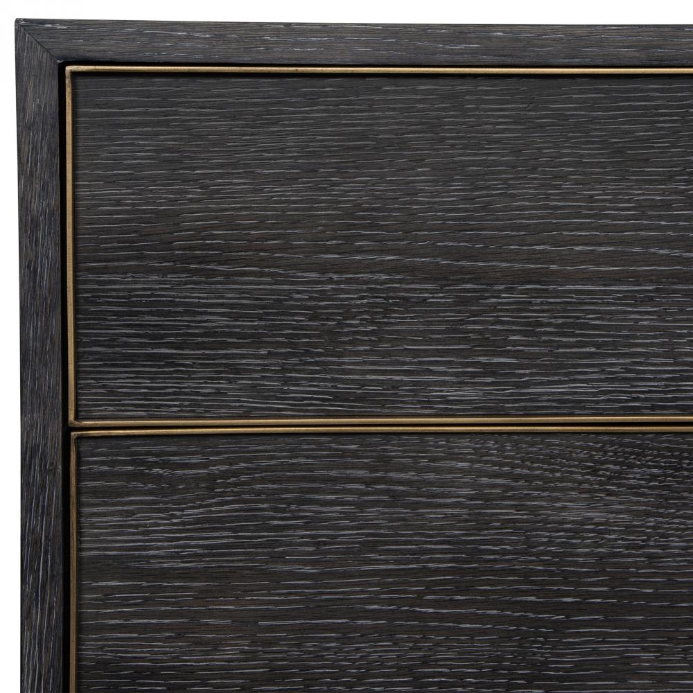 Showcasing Refined Simplicity, This Four Drawer Chest Is Layered In A Dark Walnut Finished Oak Veneer Accented With Brass Finished Metal Edge Profiles And Coordinating Drawer Pulls.