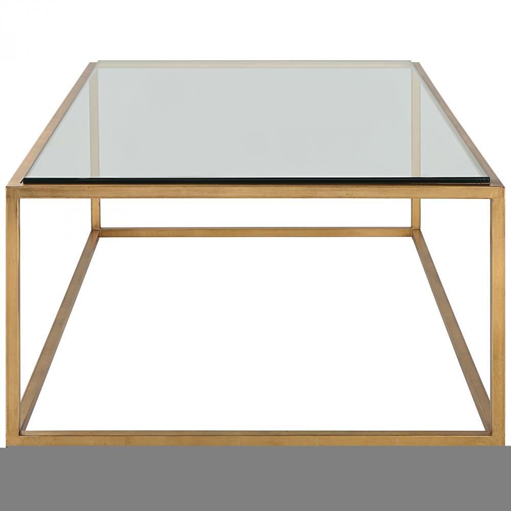 A Complement to Virtually Any Style, This Coffee Table Features A Streamline Iron Frame Finished in Brushed Gold Leaf with An Inset Tempered Glass Top.