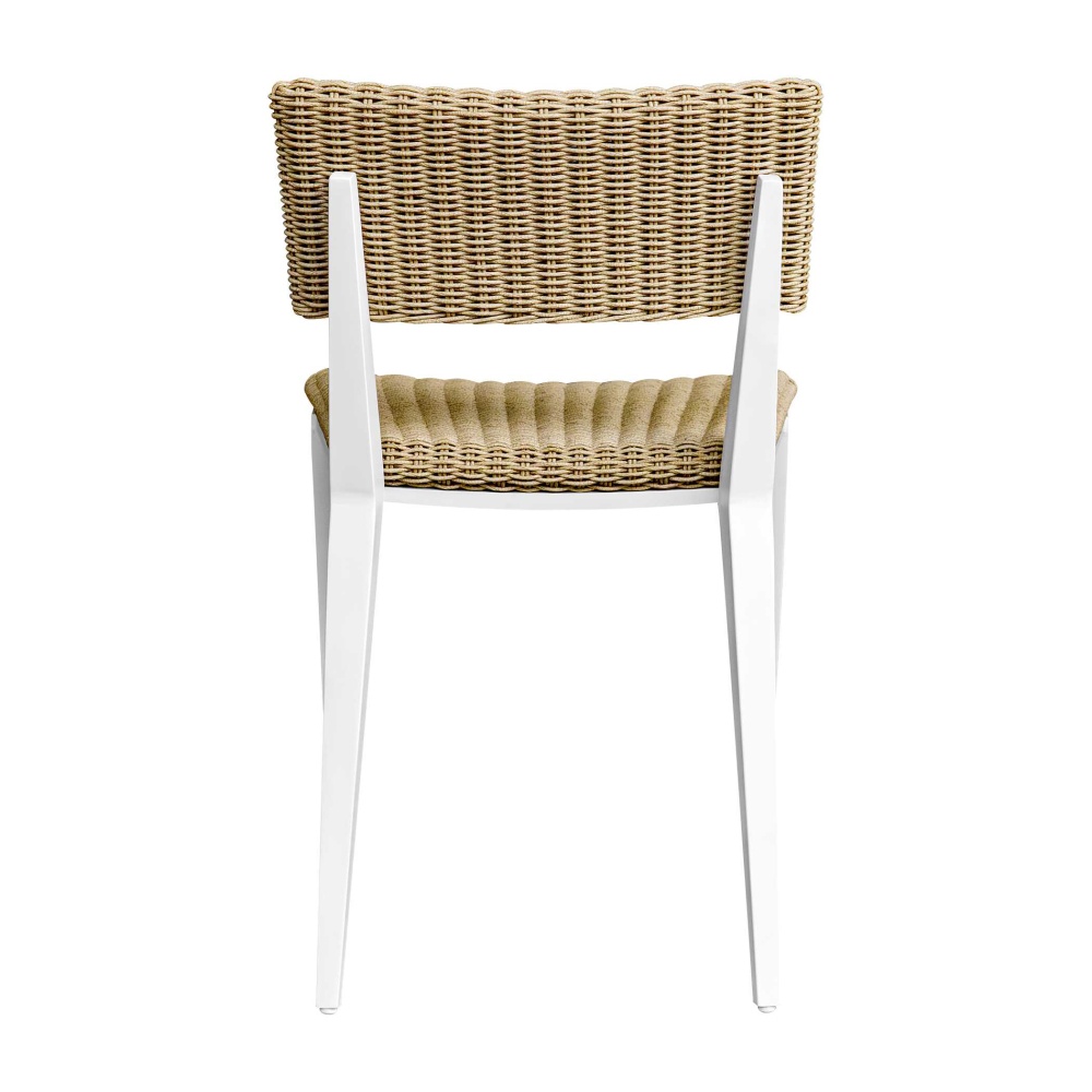 The Calbas Dining Chair Perfectly Blends Style And Comfort. The Crisp White, Powder Coated Aluminum Frame And Hand Wrapped, Honey Toned All-weather Wicker Create A Harmonious Look That Will Enhance Any Outdoor Setting.