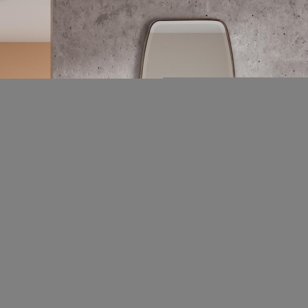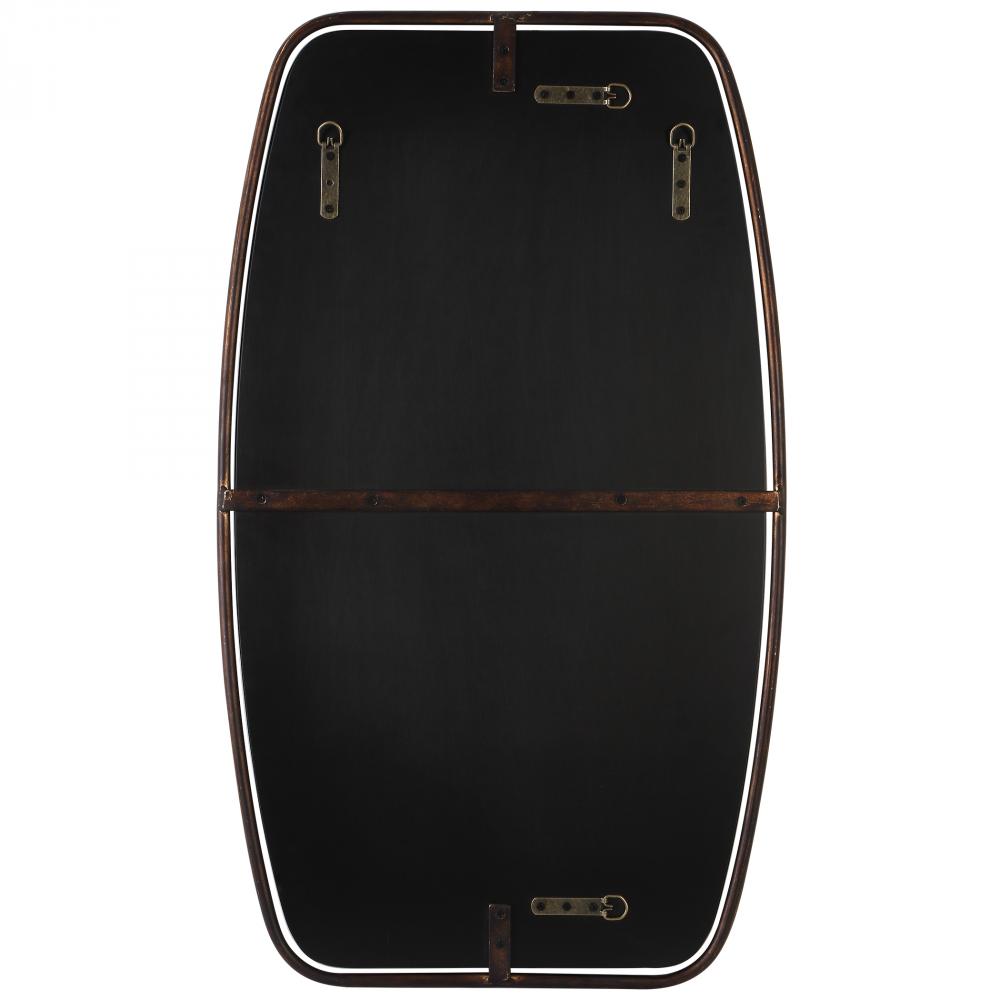 This Shaped Mirror Frame is Forged From Rounded Metal Finished in A Lightly Distressed Dark Bronze, Featuring A Floating Beveled Mirror. May Be Hung Horizontal or Vertical.
