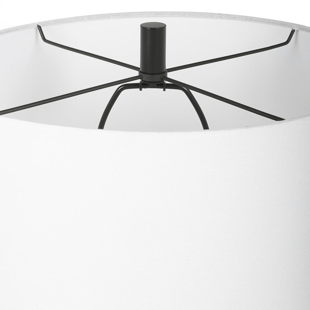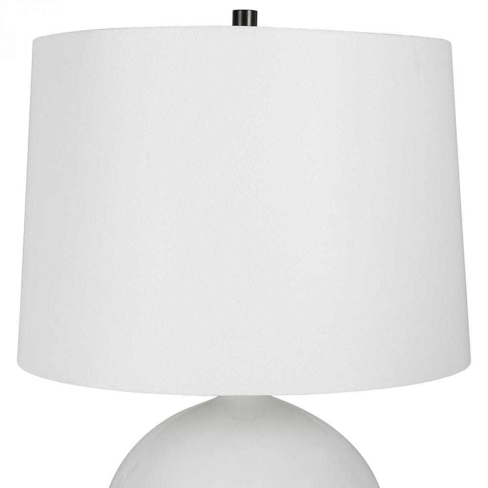 Simple Yet Sophisticated, Our Collar Table Lamp is Designed with A Rounded Ceramic Base Finished in A Gloss White Glaze Accented with Satin Black Details. The Tapered Round Hardback Shade is A White Linen Fabric.