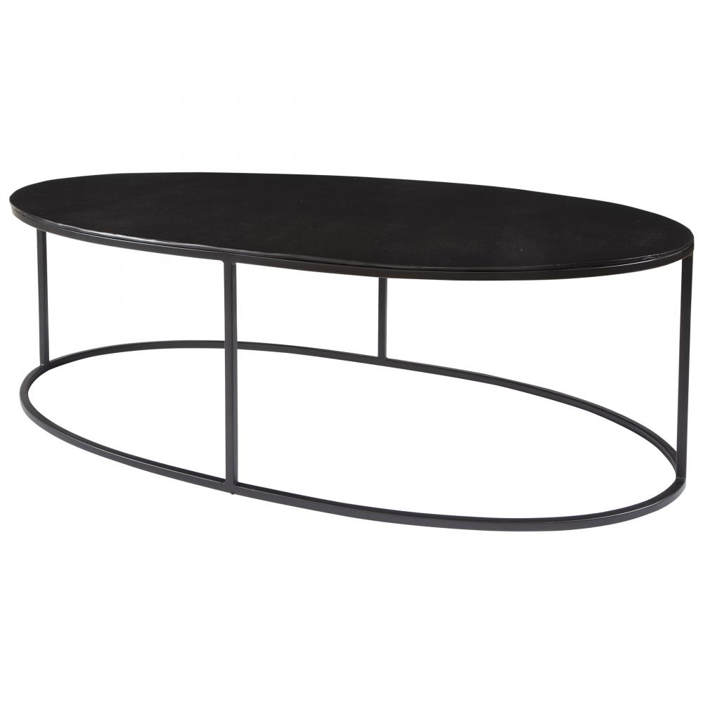 Simplistic Industrial Style Coffee Table, Constructed in An Aged Black Iron Featuring A Cast Textured Aluminum Slab Top Finished in A Plated Antique Black.