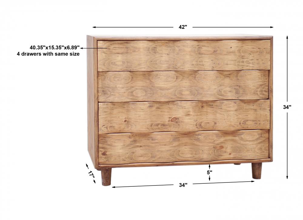 Mid-century Modern Inspired with An Updated Appeal, Layered in A Striking Pine Veneer Finished in A Natural Light Oak Rustic Stain. Each Rippled Drawer Face Features A Canted Hand Grab for Ease of Use.