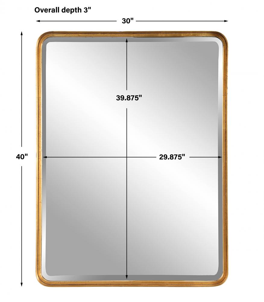 This Mirror Features A Deep Metal Band Surrounding An Offset Inner Ledge Finished in A Lightly Antiqued Gold Leaf. Mirror Has A Generous 1 1/4" Bevel and May Be Hung Horizontal or Vertical.