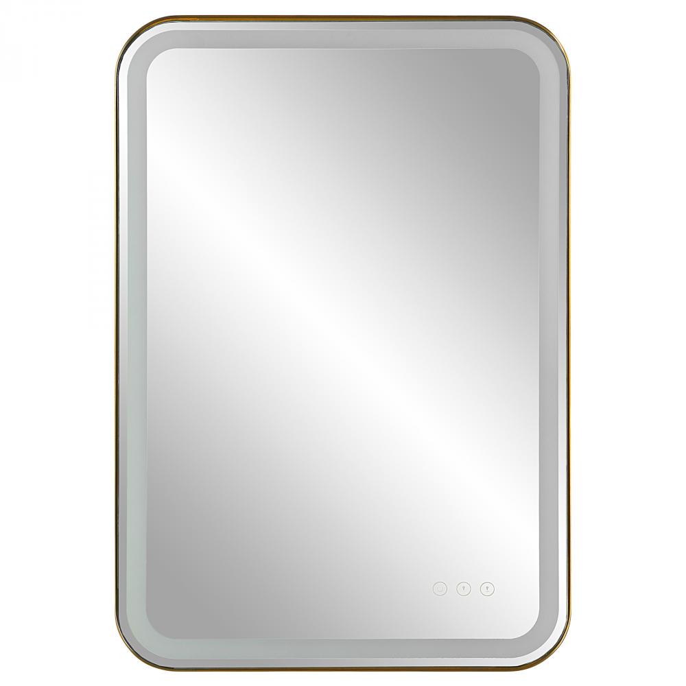Versatile in Design, This Vanity Mirror Has Integrated LED Lighting That Illuminates Through The Frosted Strip in The Polished Edged Mirror. The Plated Brushed Brass Stainless Steel Frame is Off Set From The Wall to Allow Ambient Lighting From The Back. Easy to Use Touch Buttons Are Featured on The Bottom Right of The Mirror with An on Off Function, Touch and Hold Kelvin Control From 2700k to 4000k, and Touch and Hold Brightness Control. LED Lights Rated At 40,000 Hours. Ships with Plug, But Can Be Hardwired Professionally. Touch Screen Icons Continue to Illuminate When Powered Off for Easy Navigation in Dark Settings.