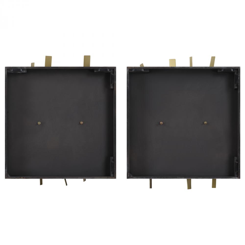 The Crosshatch Panels Bring Contemporary Flair With A Fun Three Dimensional Iron Design Finished In Antique Gold. Set On A Naturally Finished Walnut Veneer Background.