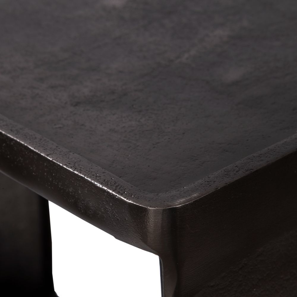 Taking Inspiration From Industrial Style, This Cast Aluminum Accent Table Features A Masculine Look with A Tray Style Top in A Dark Antique Nickel Finish. The Open Center Allows for Extra Display Space.