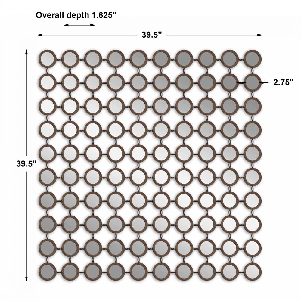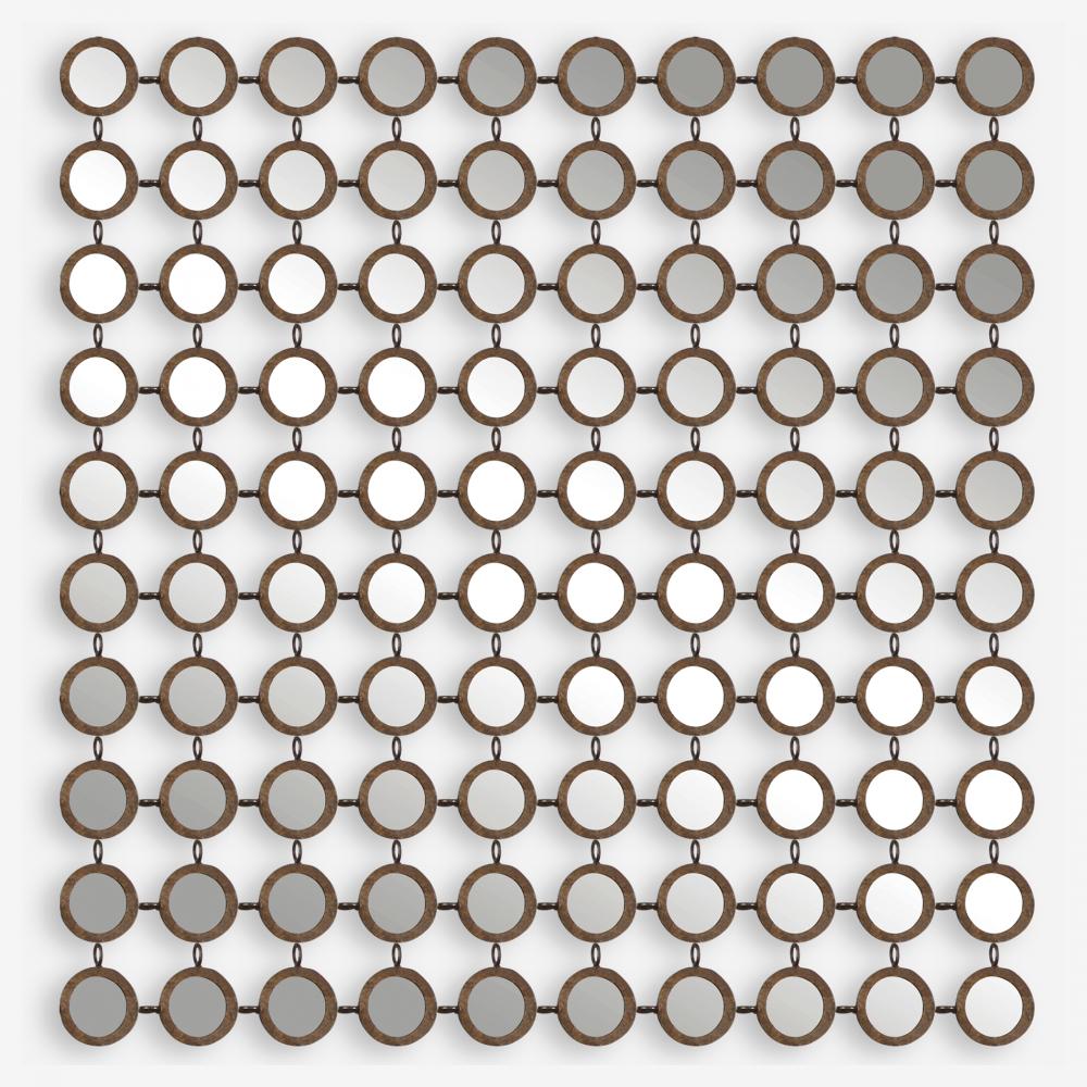 Numerous, Small Round Mirrors Are Joined By Hand Forged Metal to Create This Mirror. Finish is Lightly Antiqued Silver Champagne Leaf.