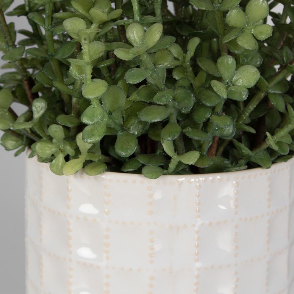 Add Interest to Any Space with This Lush Duo of Variegated Grass and Sedum, Potted in Textured Ceramic with White Glaze. Sizes: Sm-9x10x9, Lg-18x14x18