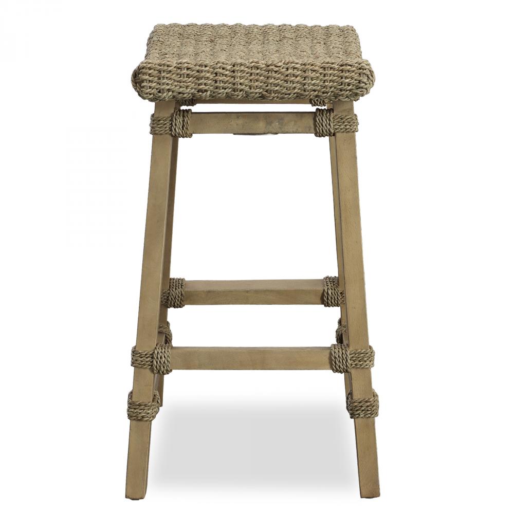 The Everglade Counter Stool Offers A Touch of Casual Coastal Styling. The Sturdy Mango Wood Base is Naturally Finished to Showcase The Grain and Texture of The Wood, Accentuated By A Natural Woven Sea Grass and Rattan Seat and Wrapped Accents.
