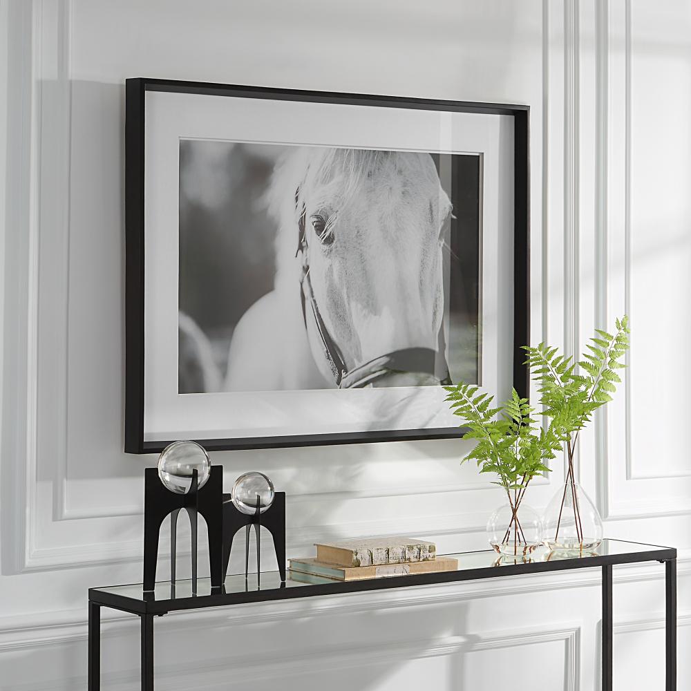 Ralph Waldo Emerson Once Said, "the Eyes Indicate The Antiquity of The Soul." As One Part of A Striking Equine Story, This Artwork Showcases An Exclusive Black and White Portrait with Layered White Matting Under Glass and A Simple Satin Black Frame.