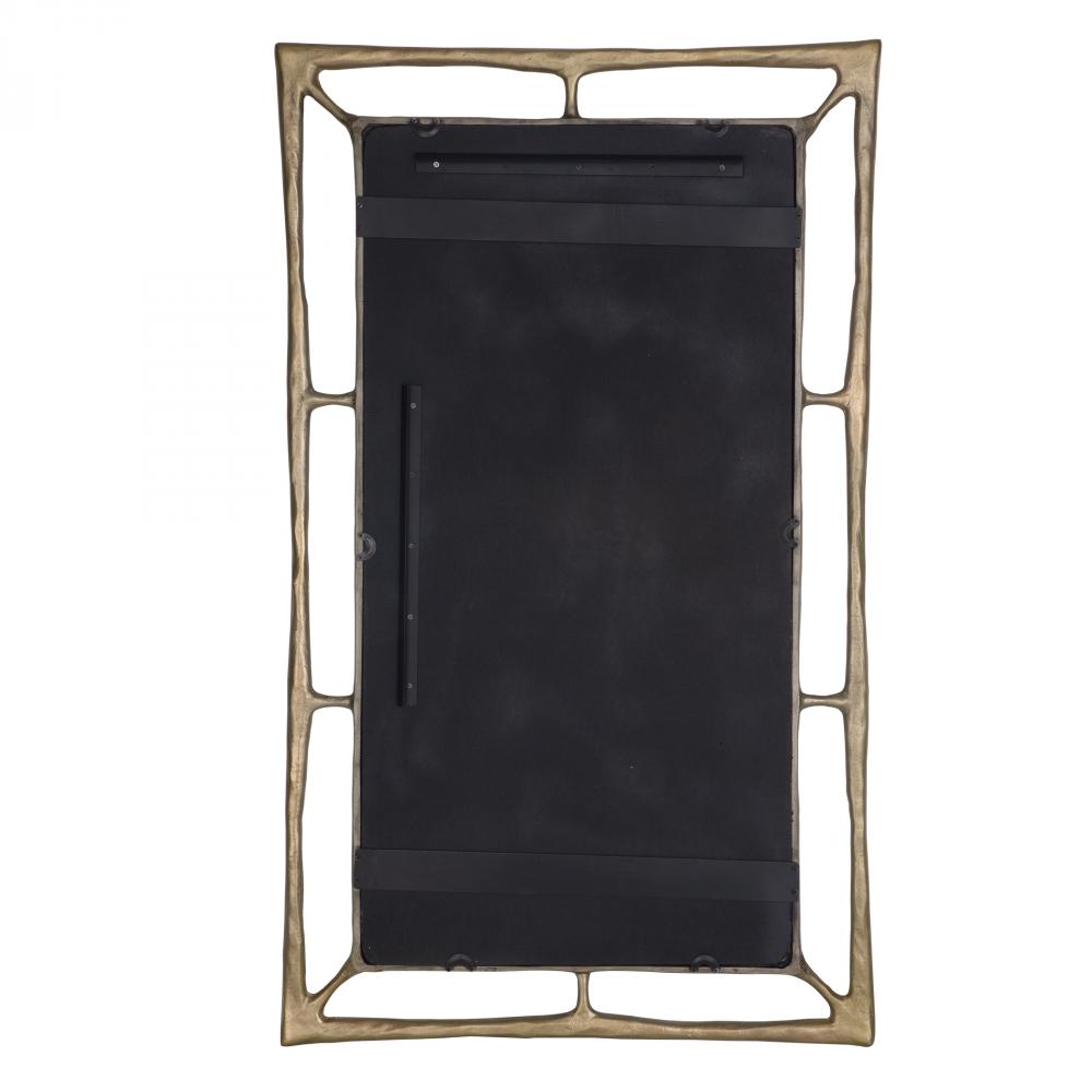 This Rectangle Mirror Is Crafted From Cast Aluminum, Showcasing Hand-forged Aesthetic With Its Subtle Asymmetrical Shape And Hammered Texture, Finished In A Plated Antiqued Brass. May Be Hung Horizontal Or Vertical.