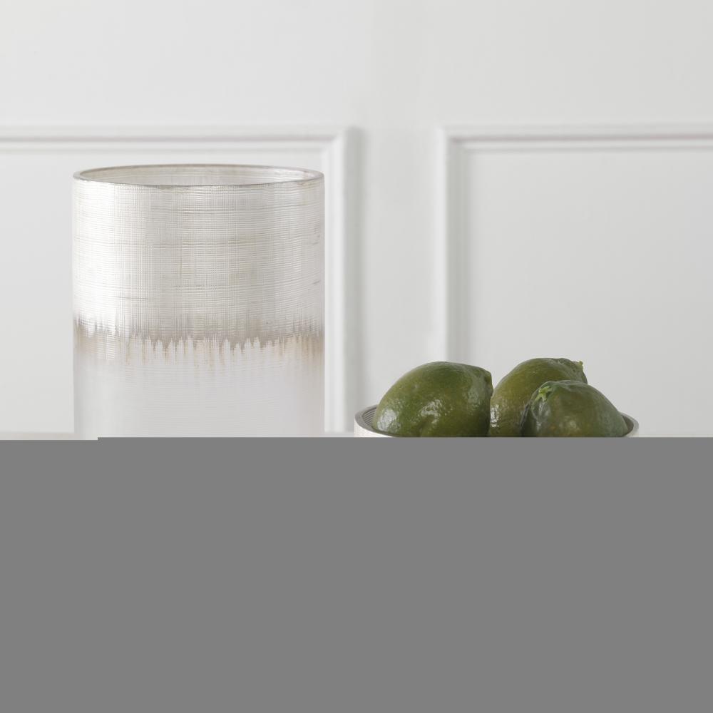 The Frost Vases Complement Virtually Any Style. Handcrafted From Etched Glass, Each Vase is Finished with A Metallic Silver Drip Design and Can Easily Hold Floral Stems, Candles, Fruit, or Stand Alone. Sizes: S-6x4x6, L-6x9x6