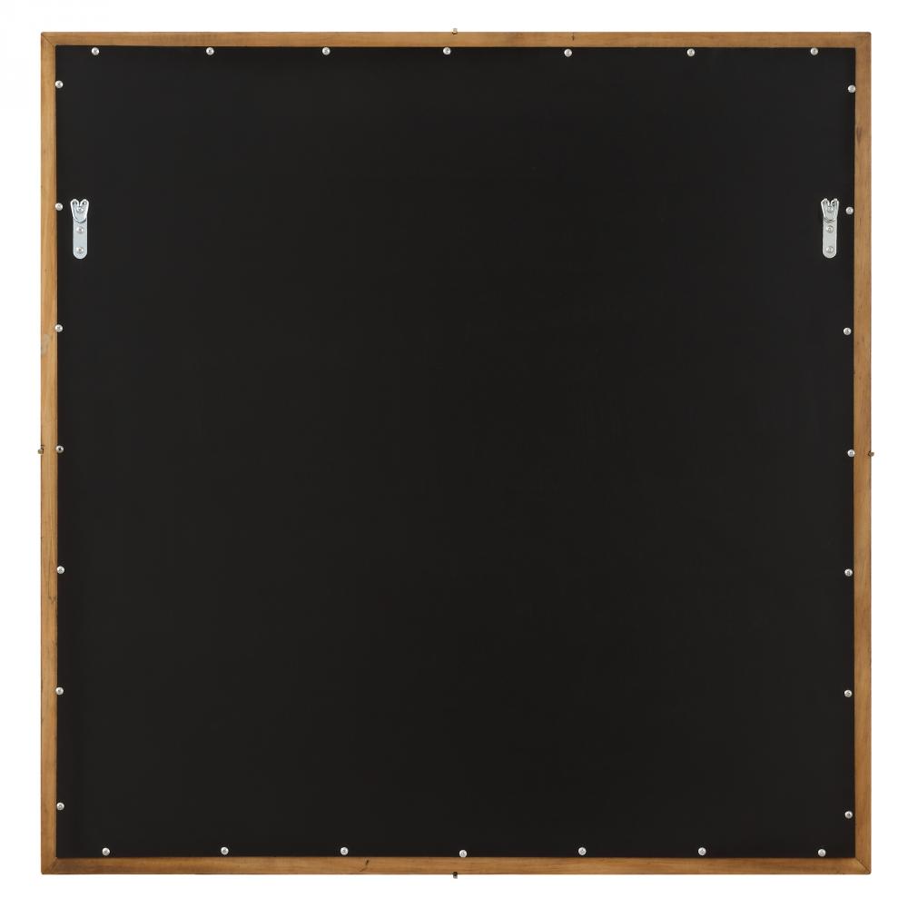 The Garonne Square Mirror Features A Solid Pine Wood Frame, With An Antiqued Walnut Stain Wash. Its Profile Boasts A Subtle Slope For Added Allure, Complemented By Stainless Steel Details Finished In Plated Brass. The Mirror Has A Generous 1" Shaped Bevel.