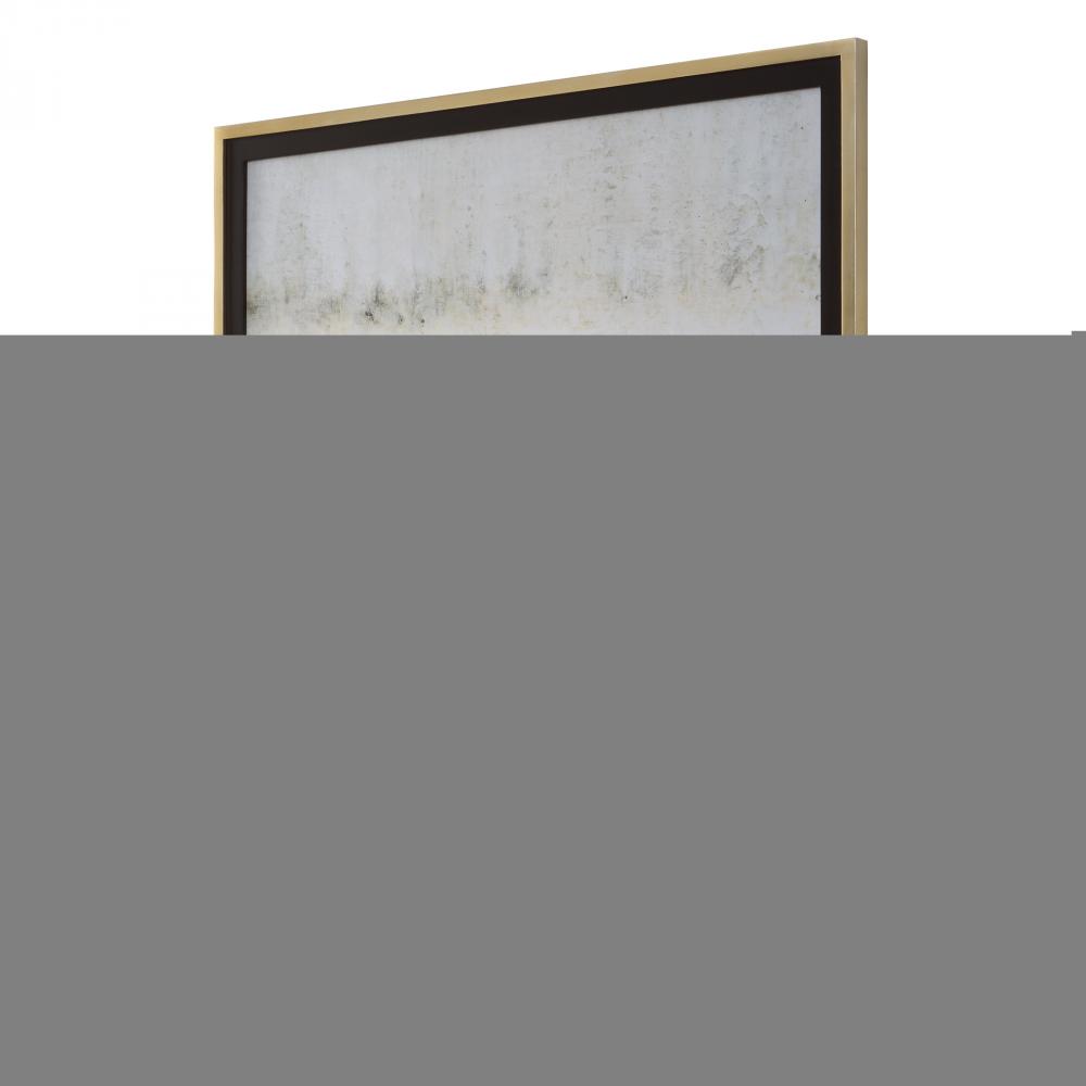 The Gilded Horizon Framed Print Depicts An Abstract Landscape in A Versatile Neutral Palette with Gold Leaf Highlights. An Antique Gold Leaf Frame with A Matte Black Inner Liner Accentuates The Print. Artwork By Tim O'Toole.