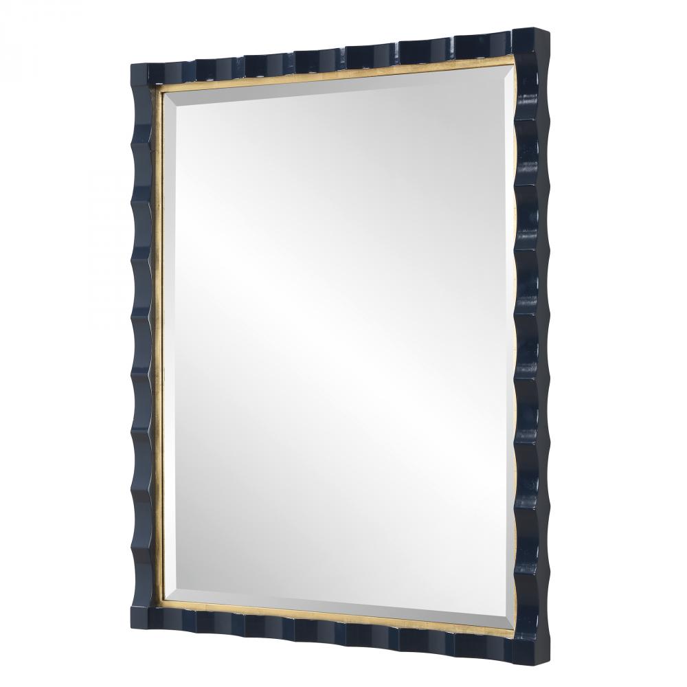 Elegantly Designed With A Scalloped Edge And A Stunning Gold Leaf Inner Liner, This Piece Is Beautifully Finished In A Rich, High-gloss Navy Lacquer. Perfect For Adding A Touch Of Luxury And Depth To Any Room, The Gulf Mirror Blends Classic Charm With A Modern Twist. A Generous 1" Bevel Is Added To This Piece, Which May Be Hung Horizontal Or Vertical.