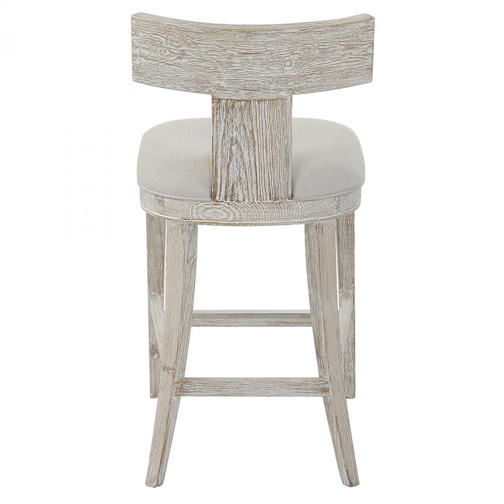 This Modern Take on A Klismos Chair Features A Curved Wood Frame in A Whitewashed Finish, with Wire Brushed Details Revealing Natural Pine Wood Undertones. Paired with A White Slubbed Performance Fabric Cushion. Seat Height is 26".