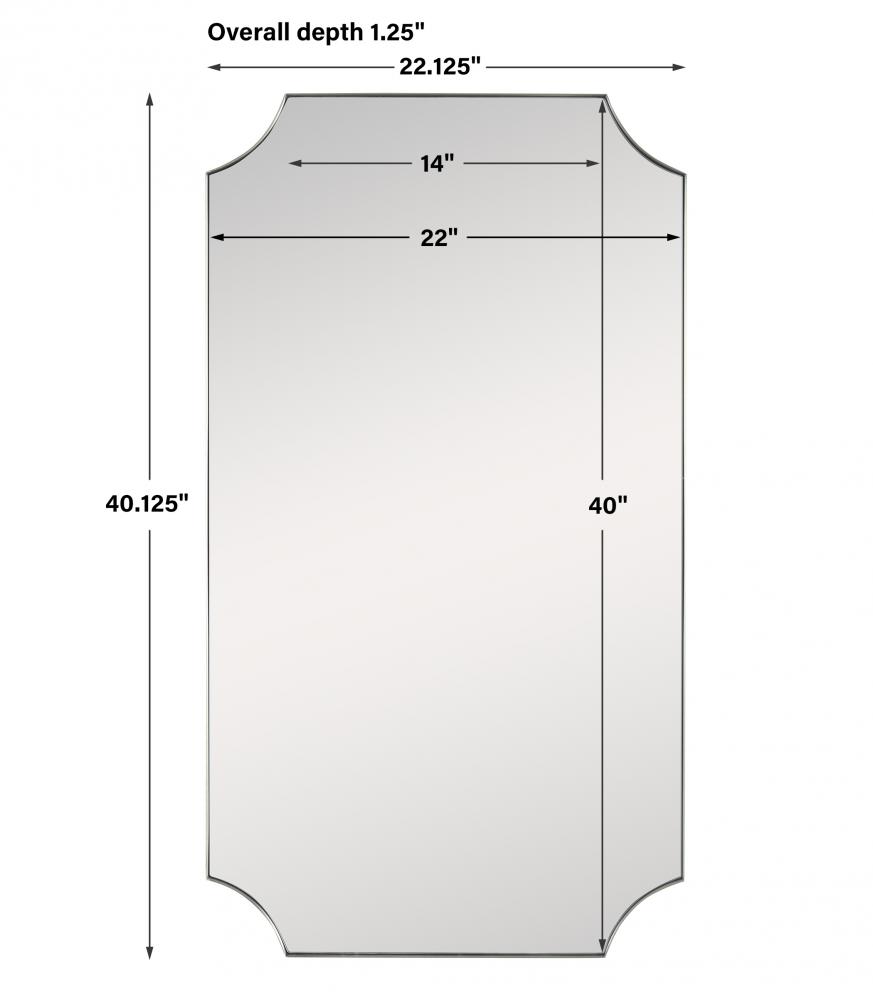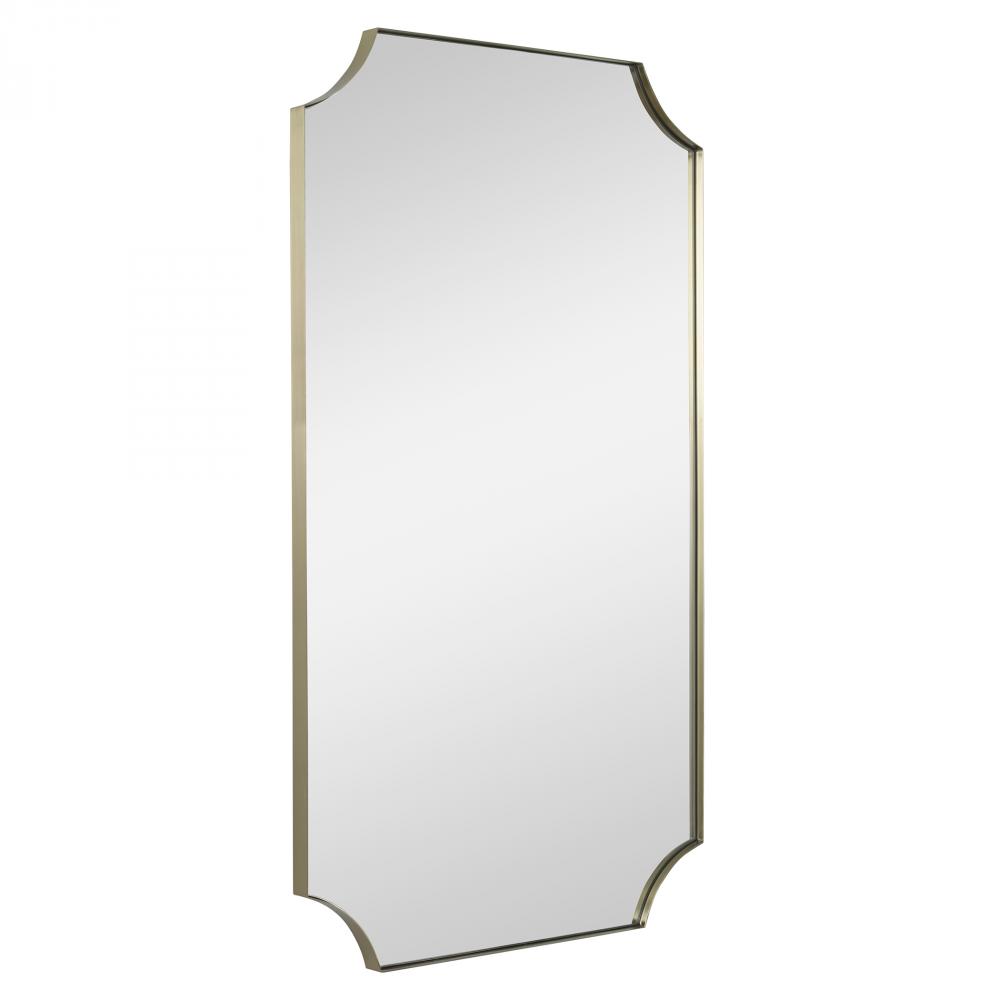 A Stylish Take on Updated Traditional Style, This Mirror Features A Stainless Steel Frame and is Finished in A Plated Brushed Brass with Scalloped Corner Detailing. May Be Hung Horizontal or Vertical.