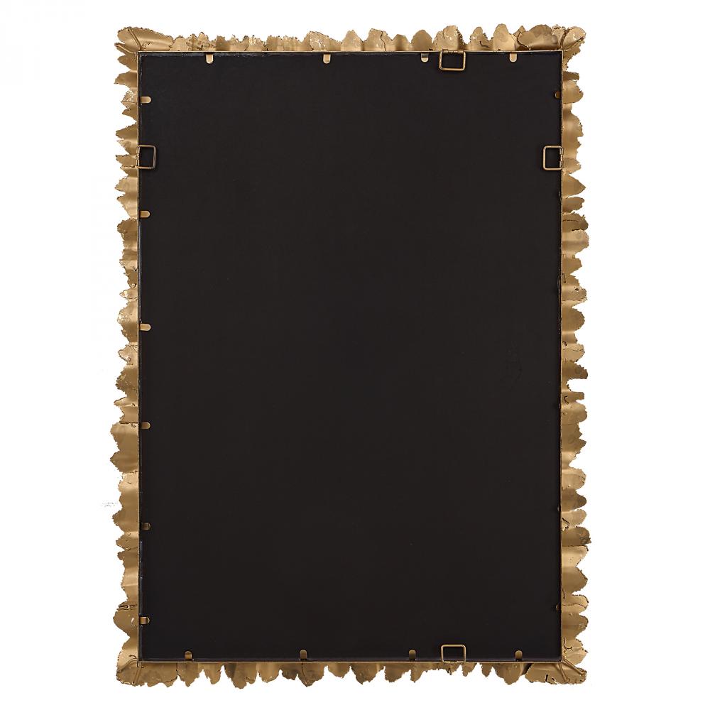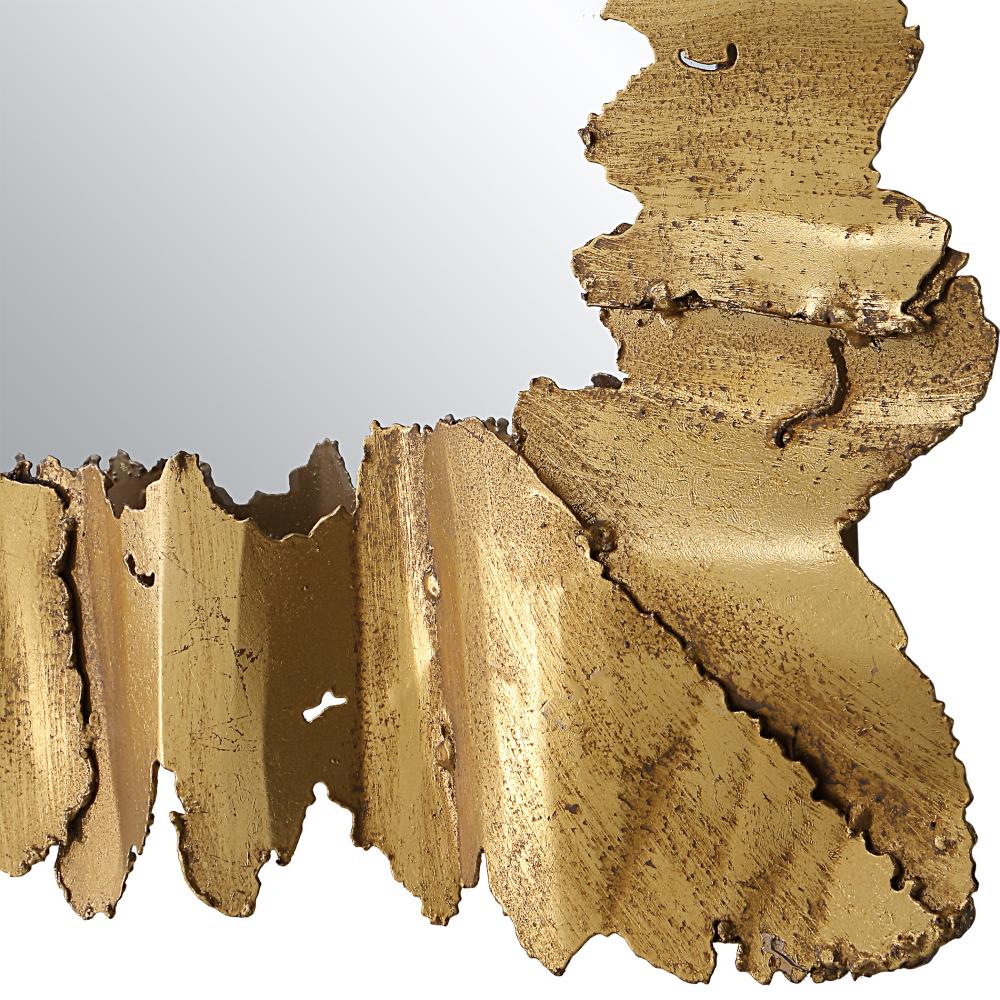 The Lev Mirror Showcases Crude Cut Steel Pieces Finished in Antique Gold That Are Layered Together to Create A Contemporary Frame with An Artful Design. May Be Hung Horizontal or Vertical.