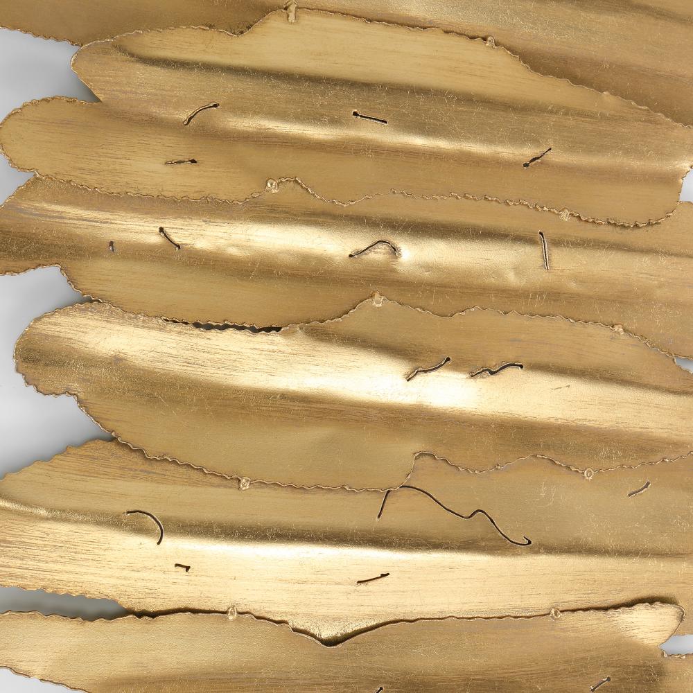Iron Wall Art Featuring Layers of Metal Strips with Crude Edging, Finished in An Antique Gold Leaf and Set on A Matte White Iron Backing. May Be Hung Horizontal or Vertical.
