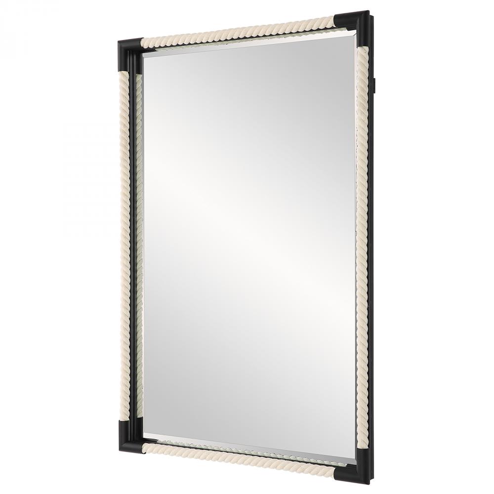 This Versatile Mirror Features A Thick, Twisted, White Cotton Rope Paired with Matte Black Iron Details for A Modern Coastal Aesthetic. Mirror Has A Generous 1 1/4" Bevel. May Be Hung Horizontal or Vertical.