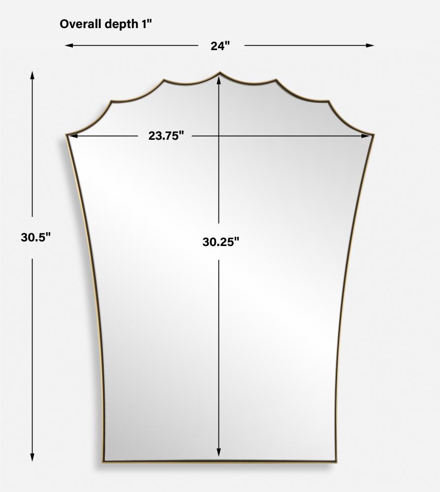 The Monarch Vanity Mirror Is Crafted With A Sleek Stainless Steel Frame Finished In Plated Antique Brass. Its Scalloped Arched Top And Curved Tapered Sides Add A Touch Of Sophistication, Surrounding A Floating Polished Edge Mirror That Enhances Any Room's Ambiance.