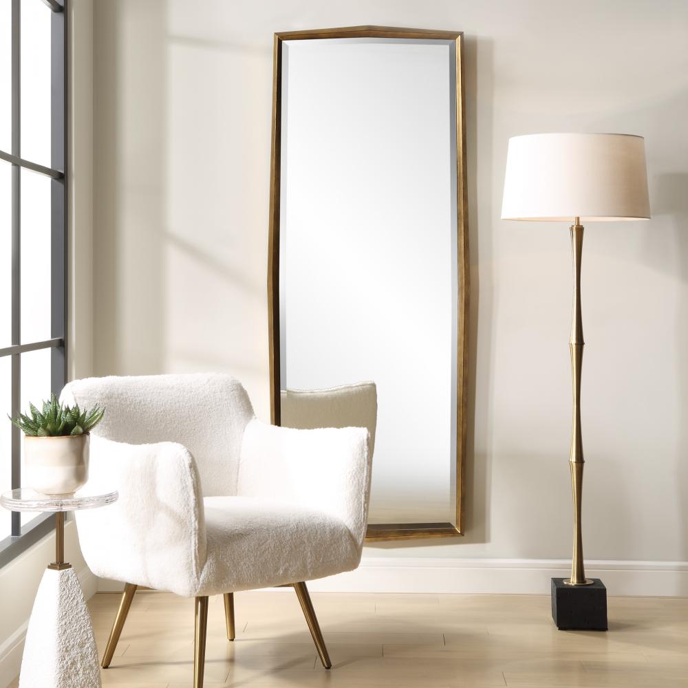 The On Point Dressing Mirror Features A Faceted Profile Crafted In A Solid Wood Frame. Each Of The Four Sides Gracefully Bows Out, Enhancing The Heavily Antiqued Gold Leaf Finish. The Petite 3/4" Bevel Elegantly Follows The Frame's Contours, Elevating Its Appeal And Adding A Touch Of Sophistication To Any Space.