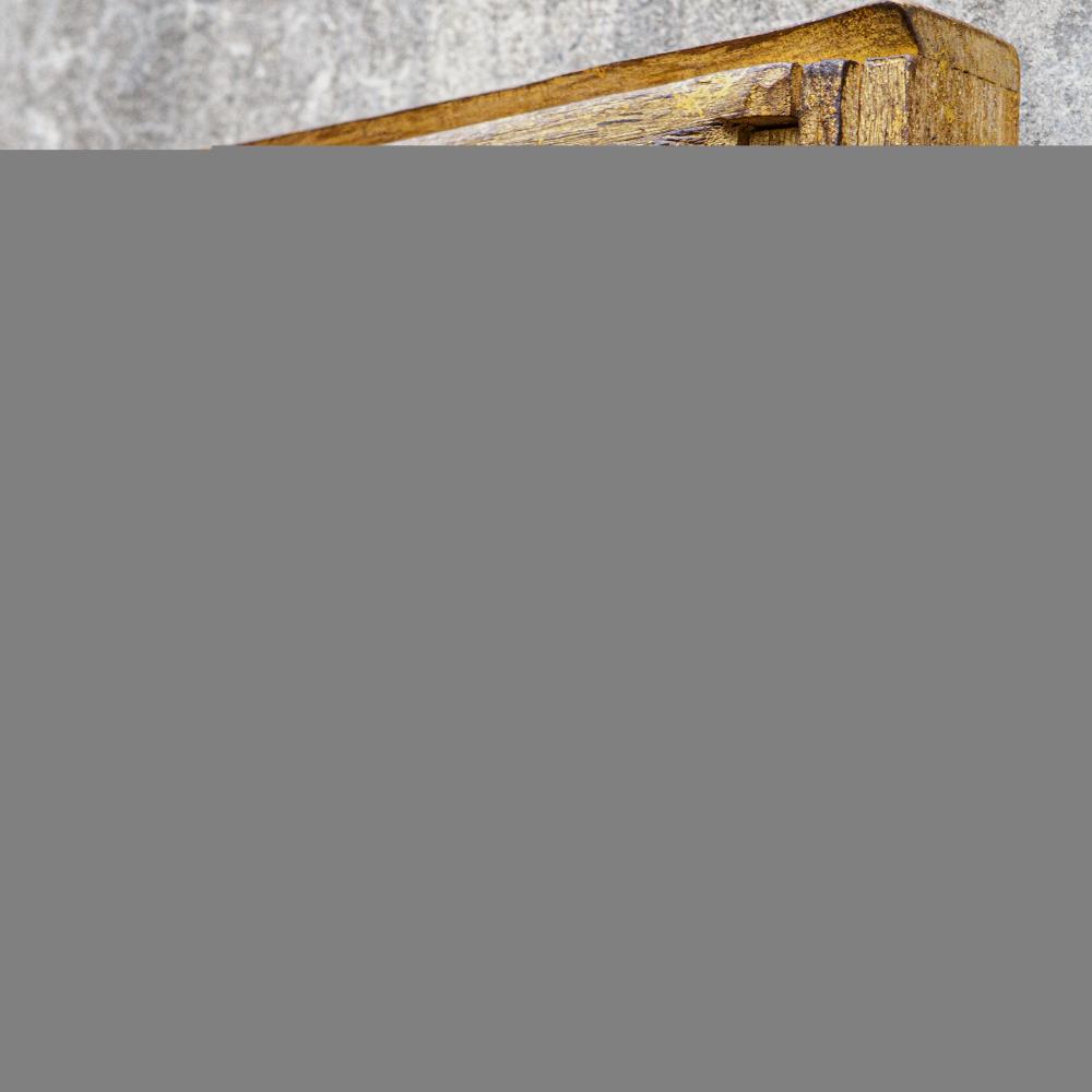 The Overlap Mirror Showcases Organic Curves By Using Alternating Raw Layers Of Teakwood Finished In A Heavily Distressed Antique Gold Leaf Overlay With Dark Undertones. Mirror Has A Generous 1" Bevel. May Be Hung Horizontal Or Vertical.