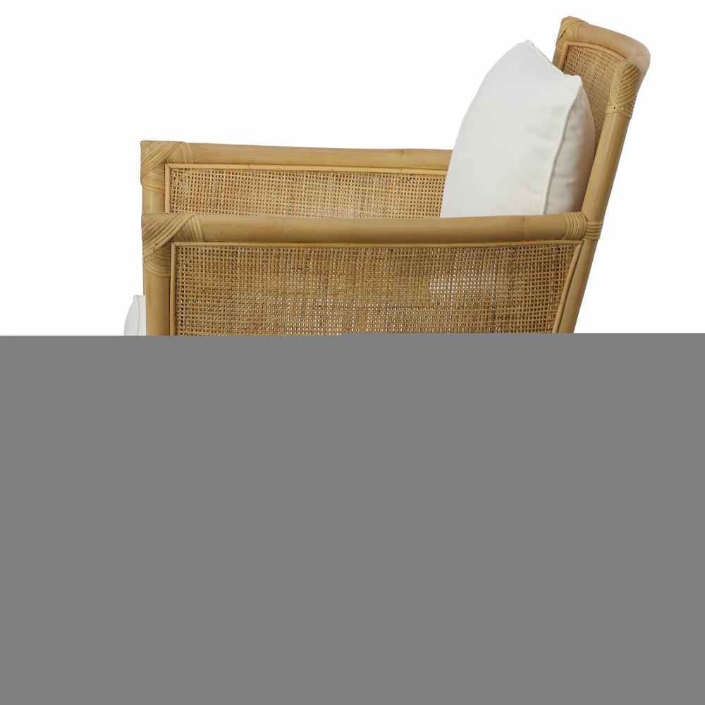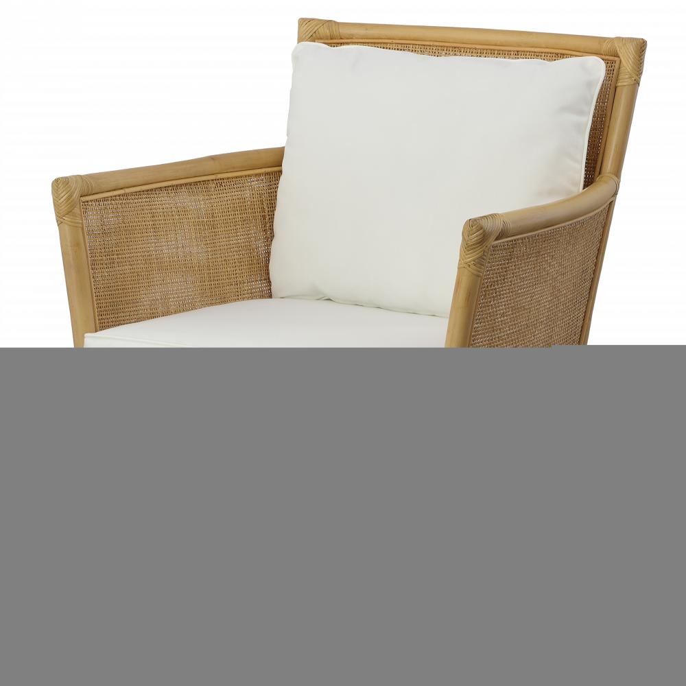 Relax and Recline Into Coastal Living with The Pacific Armchair. Crafted From Natural Woven Rattan with Plush Cushions Tailored in A Durable White Polyester Performance Fabric. Seat Height is 17".