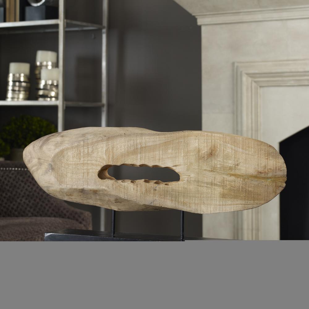 Natural Mango Wood Log Displayed on A Matte Black Base. Each Piece is Handcrafted Making It Unique. Sizes Will Vary. Cracks and Variations in The Grain Are Normal.