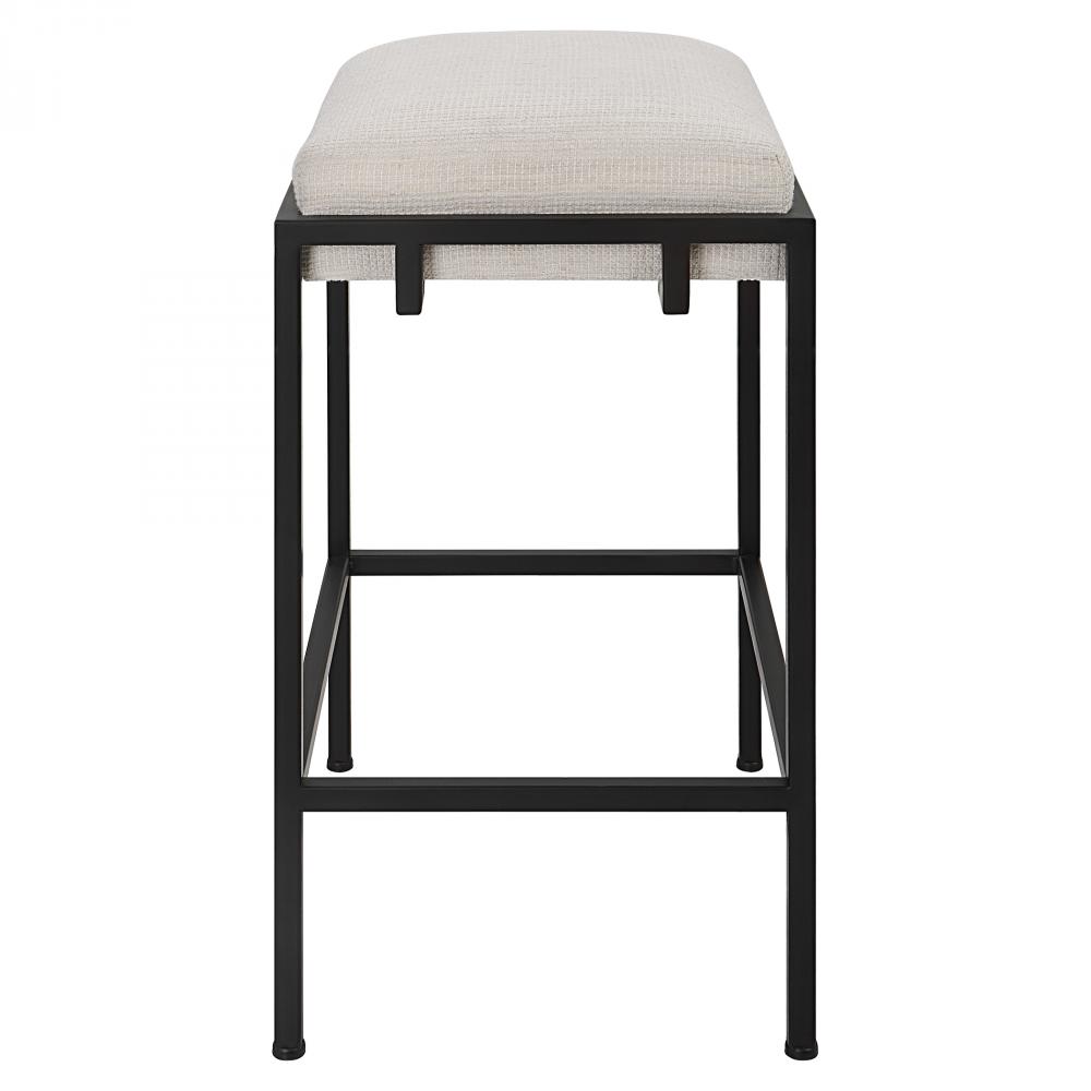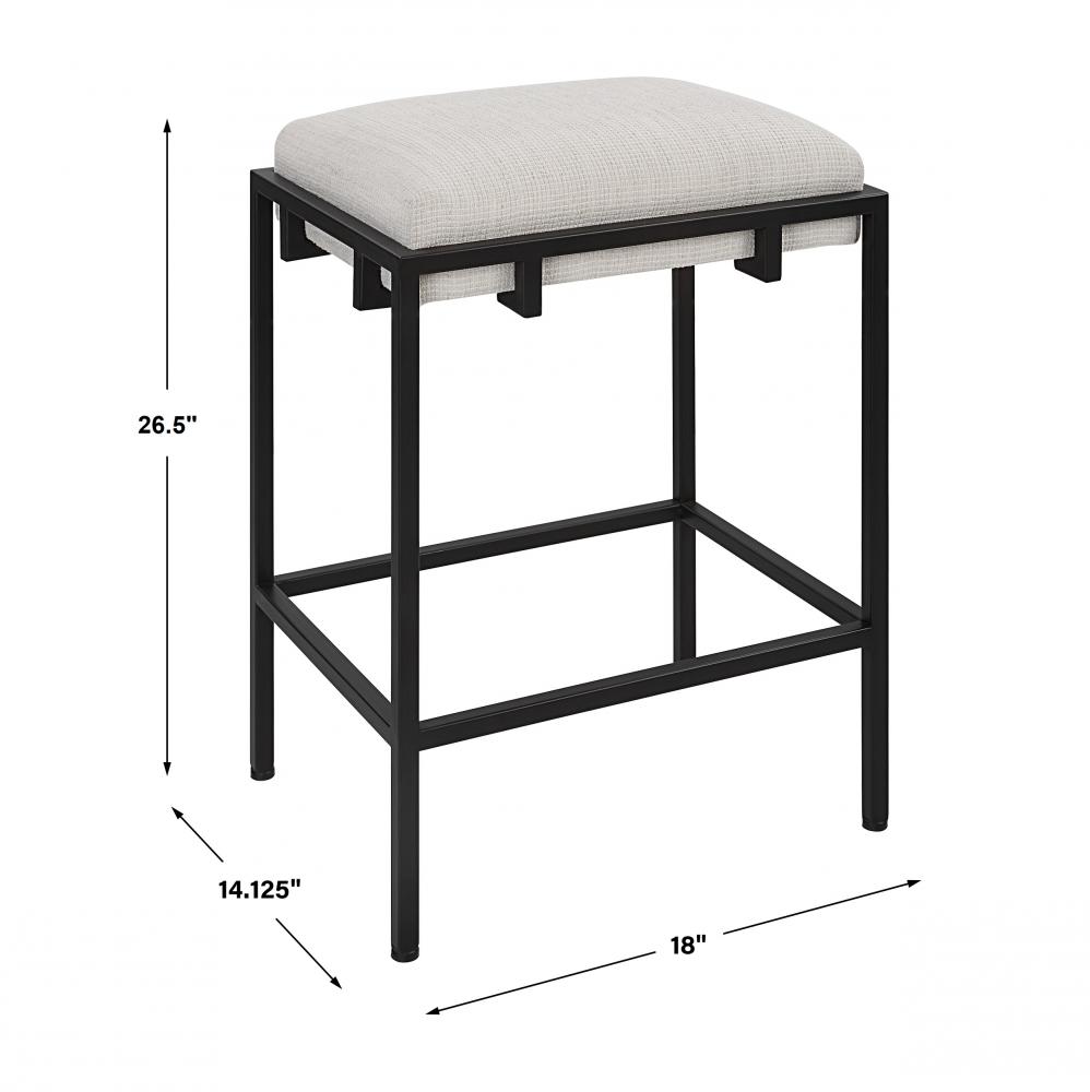 A Classic and Sophisticated Color Combination, This Counter Stool Features A Sleek Matte Black Iron Frame and is Paired with A Plush Upholstered Seat in A Crisp White Waffle Textured Polyester. Seat Height is 27".