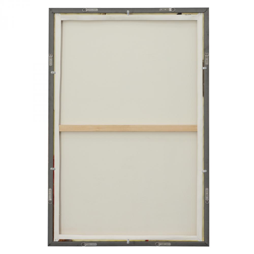 Shades of Beige, Red, and Taupe Make Up This Mixed Media Giclee on Canvas. Complimented By A Solid Wood Frame with Walnut Finish, This Piece May Be Hung Horizontal or Vertical. Each Canvas is Proudly Handcrafted and Printed in The USA. Artwork By Terri Burris.