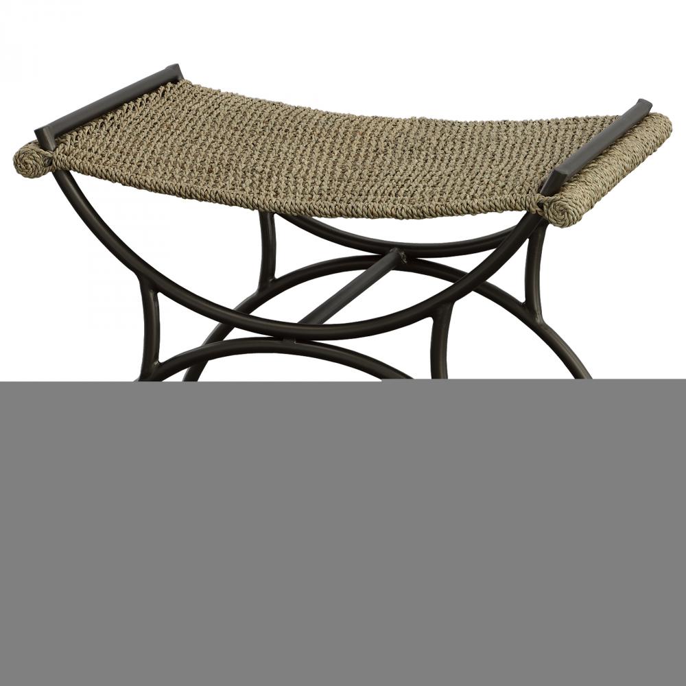 Our Playa Small Bench Showcases A Handwoven Seat Made of Natural Seagrass Supported By An Elegant Curved Metal Base Finished in Brushed Gunmetal.