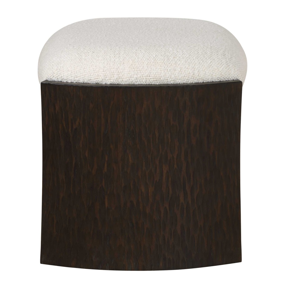 The Port Bench Is A Modern Accent Piece That Embodies Scandinavian Design Principles With Its Clean Lines And Functional Form. The Playful Scooped Profile Is Enhanced With Chiseled Texturing Finished In Dark Walnut, Complemented By A Plush Upholstered Seat In Crisp, Textured White Polyester.