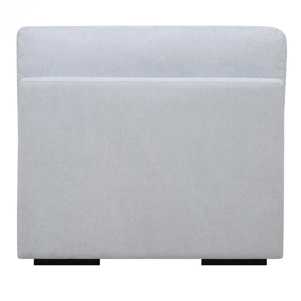 A Modern Silhouette That Offers Style And A Comfortable Place To Curl Up. The Refuge Modular Collection Is Crafted With Premium, High Durability Foam Cores And Synthetic Down Wrap. Featuring The Patented RidgEraser Technology To Ensure Consistent Comfort Between Cushions. Upholstered In A Finely Textured, Cleanable Polyester In Light Cloud Blue. Seat Height Is 20".