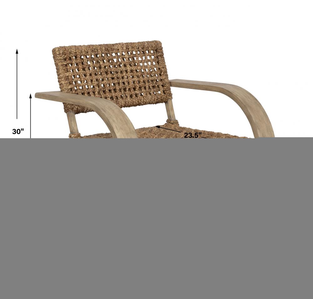 A Modern Bohemian Accent, Featuring A Natural Woven Water Hyacinth Seat on A Curved Solid Wood Frame Giving Flexible Movement, Layered in A Mango Veneer with A Smooth Weathered Driftwood Gray Stain. Seat Height is 15".