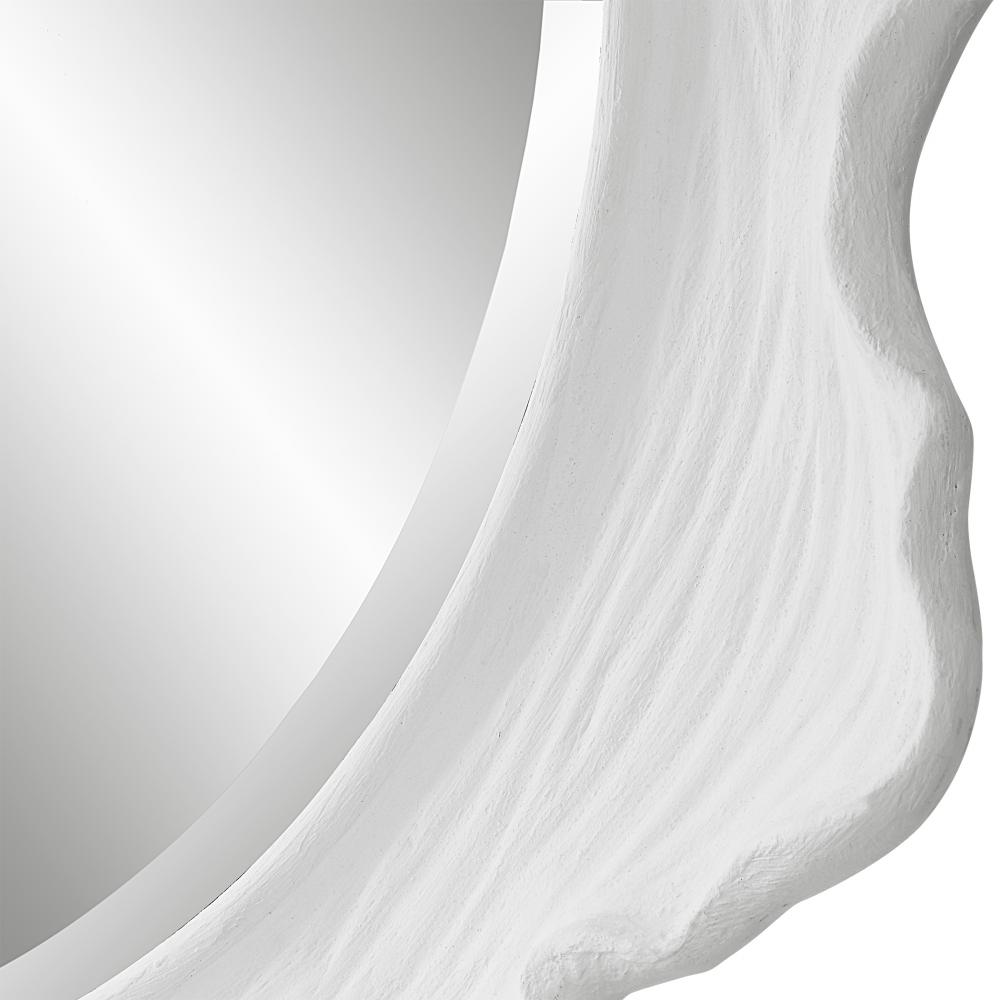 Reminiscent of White Coral, This Round Mirror Showcases A Contemporary Coastal Design. The Organic Shaped Frame is Finished in Matte White with Noticeable Waves and Texture.