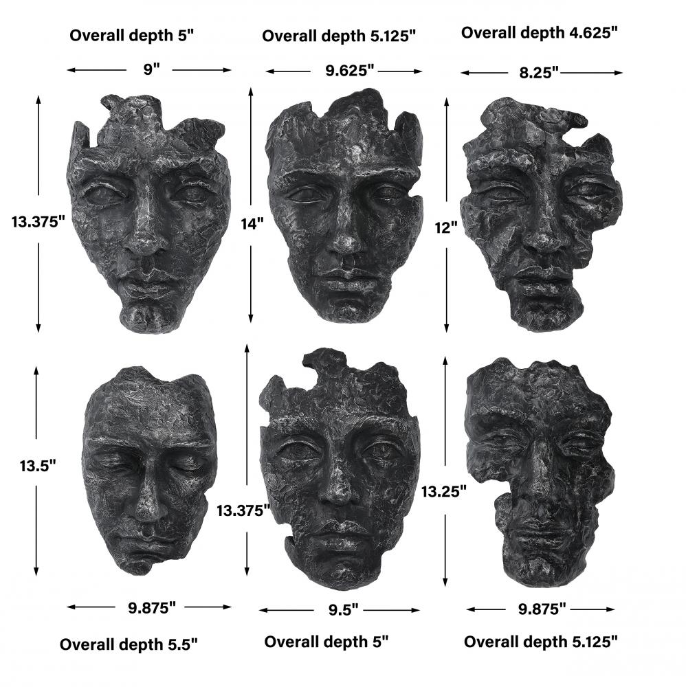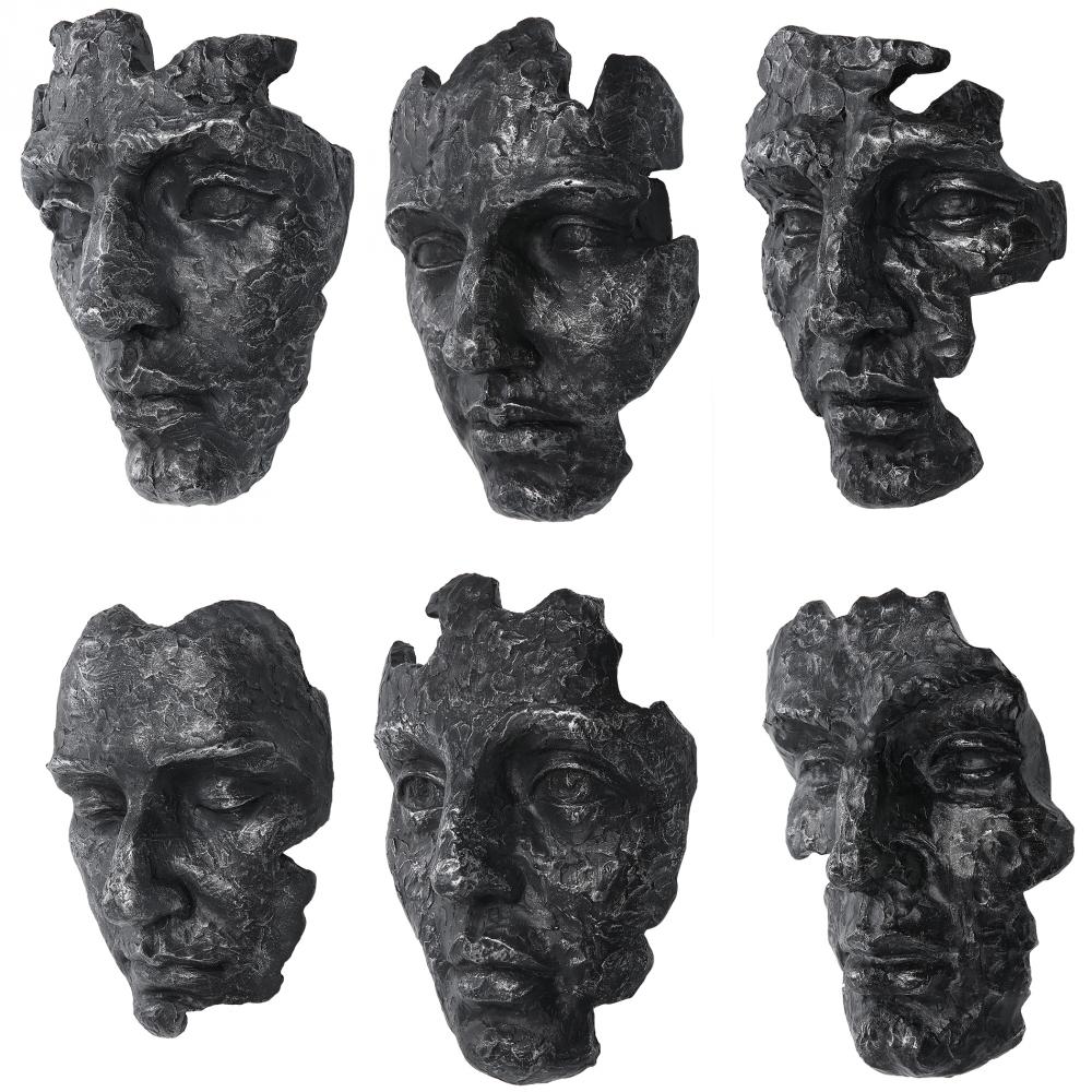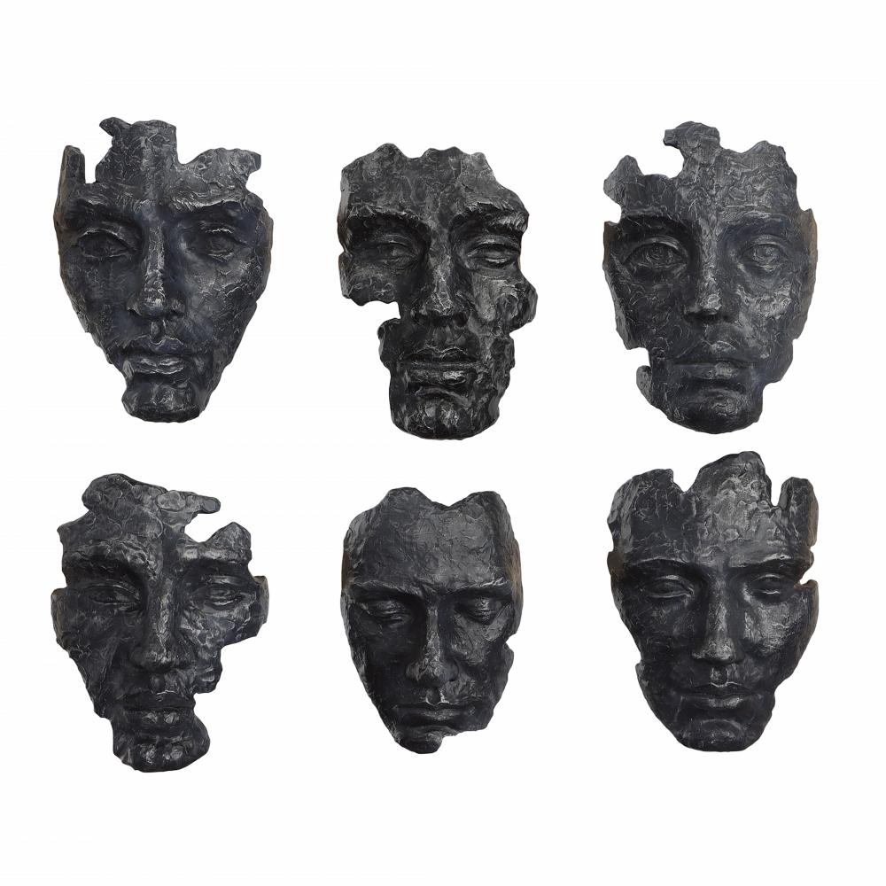 Inspired By Works From Modern Art Galleries, These Masks Are Handcrafted with A Sculpted Look in A Patinated Steel Gray Finish with Noticeable Metallic Details and Texture.