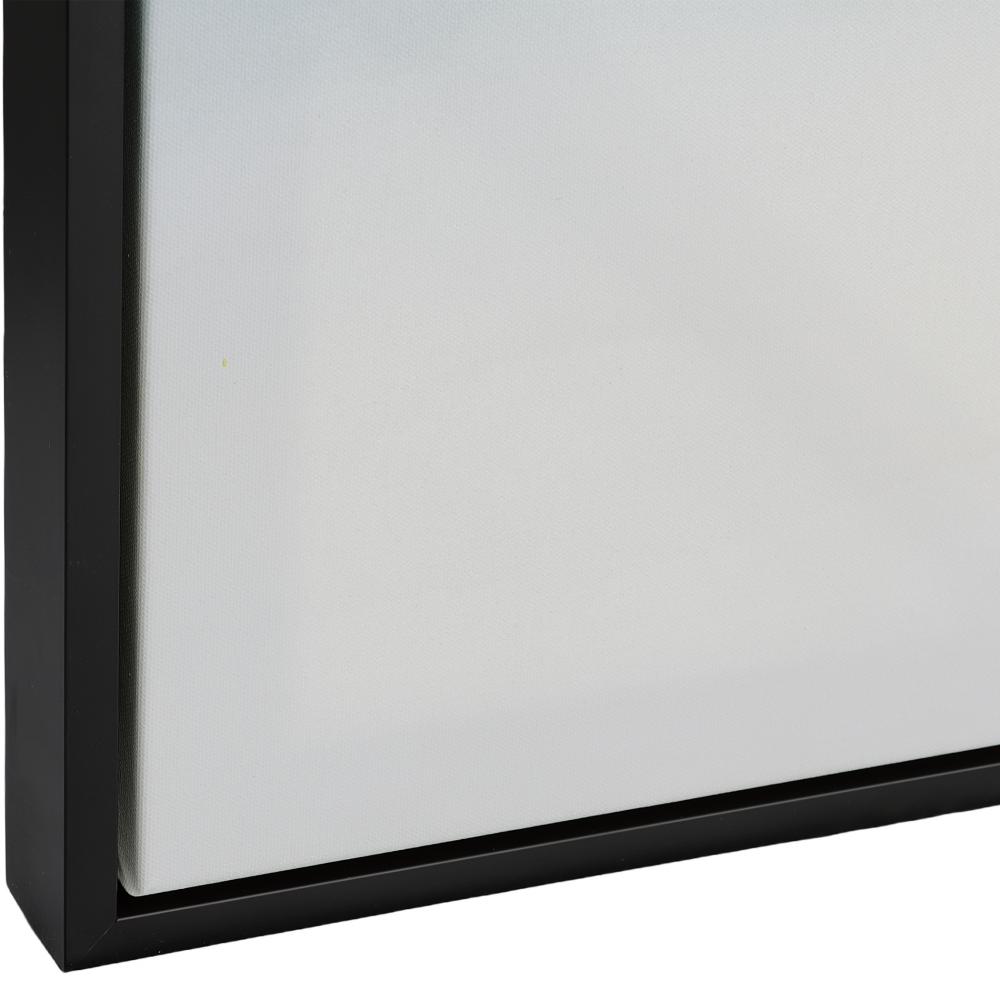 The September Desert Giclee on Canvas Exibits A Modern Watercolor of Serene Navy, Teal, and Beige Tones. Accented By A Solid Wood Gallery Frame with Black Finish. May Be Hung Horizontal or Vertical. Each Canvas is Proudly Handcrafted and Printed in The USA. Artwork By Kippi Leonard.