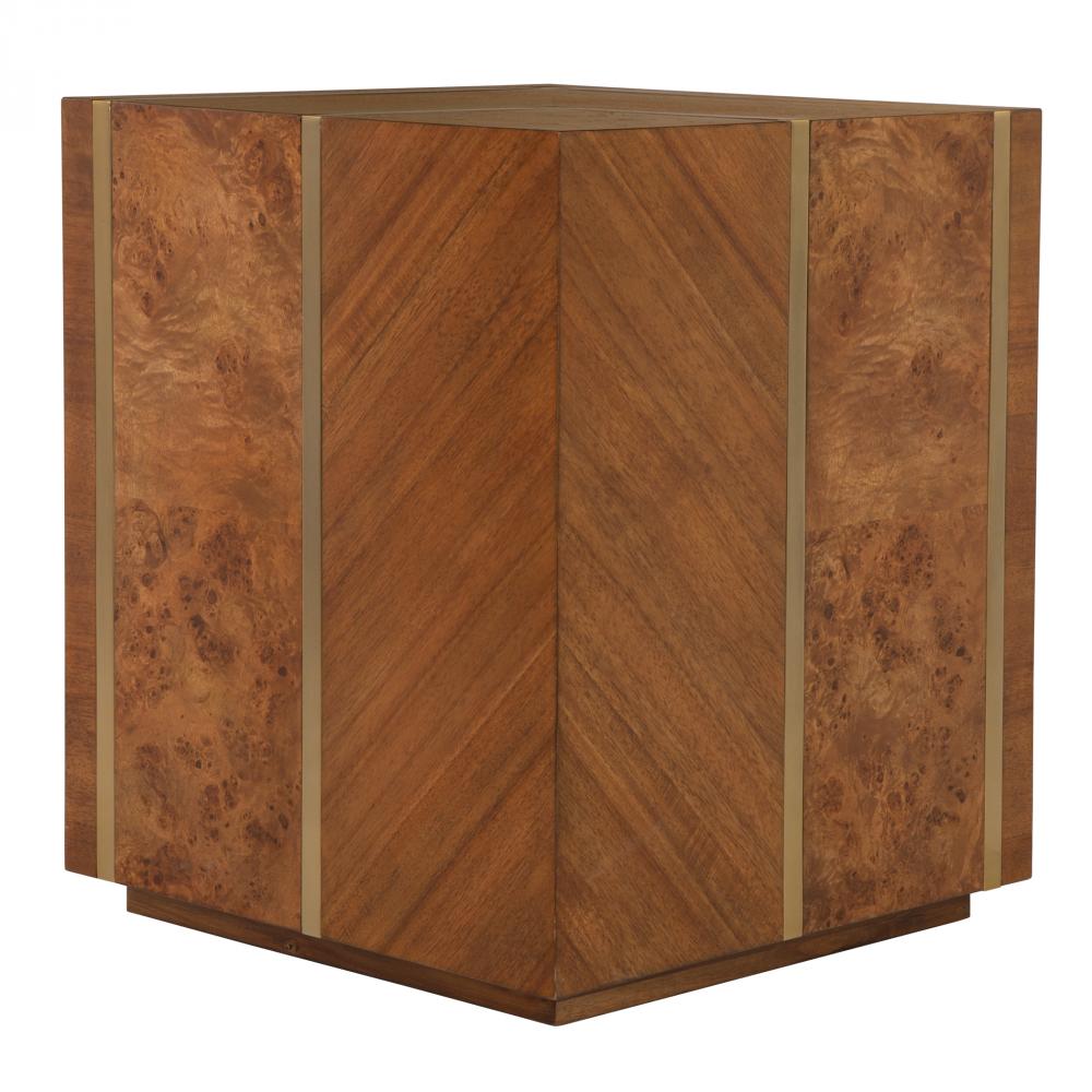 Crafted From A Combination Of Different Veneers And Detailed Metal Work This Accent Table Offers Striking Contrast. Made From Maple Burl, Acacia, And Alder Each Wood Shows Its Distinctive Grain Pattern And Color.