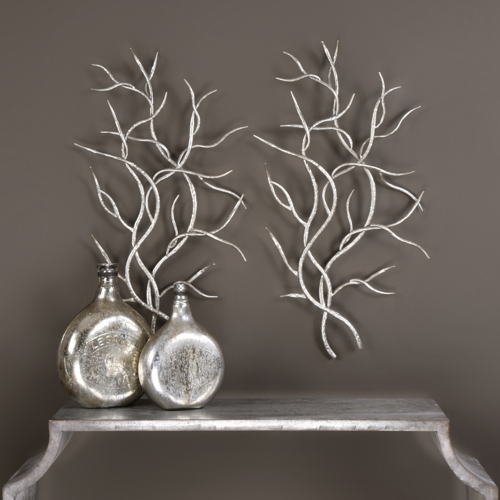 Artistically Replicated Branches Made of Hand Forged and Hand Hammered Iron with A Bright Silver Leaf Finish. May Be Hung Horizontal or Vertical.